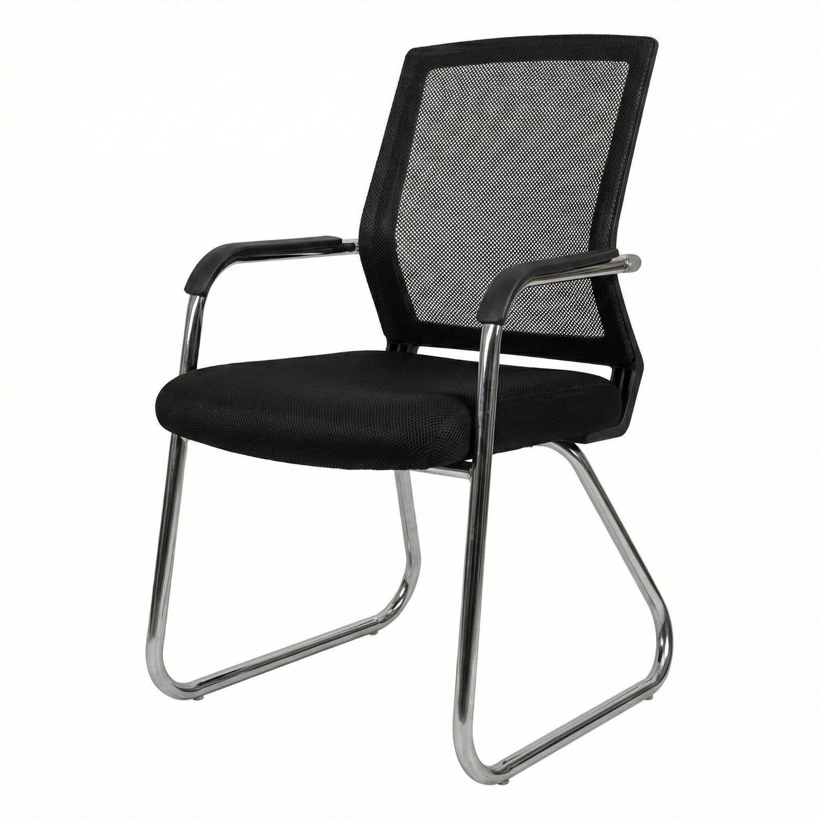 Mesh Back Visitor Chair, With Fabric Seat, Chrome Arm/Base, Black - DAN C38