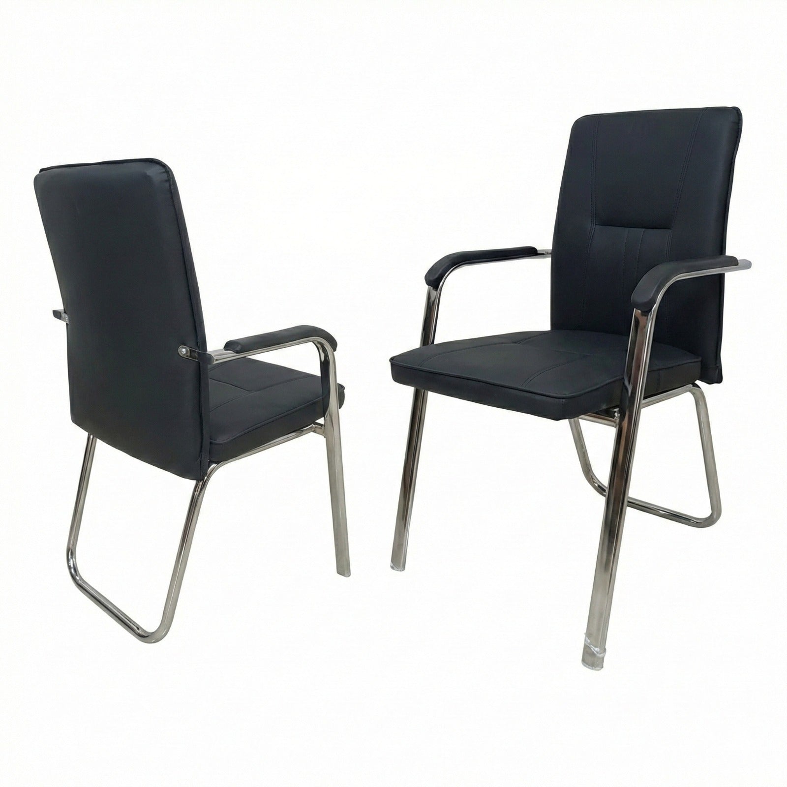 PU Visitor Chair, Chrome Base, Black - DAN 827